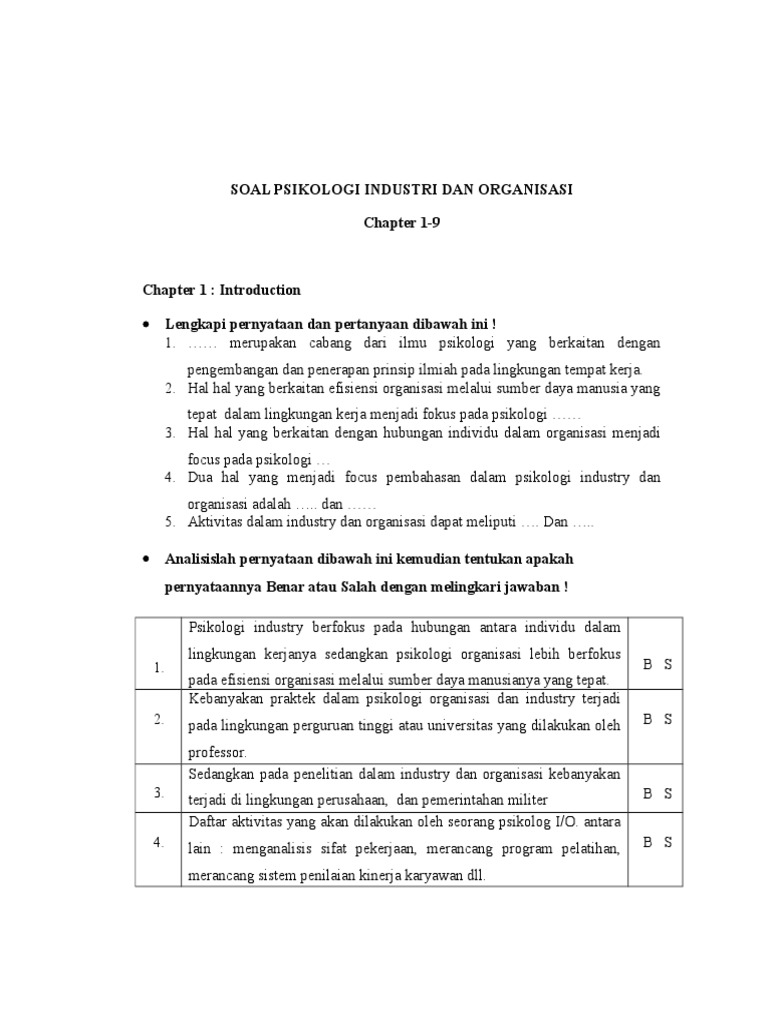 Soal Uas Psikologi Industri Dan Organisasi Pdf