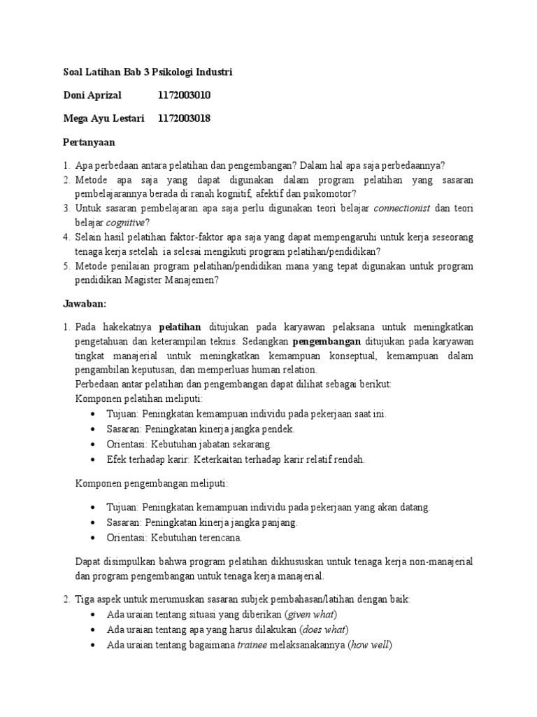 Soal Latihan Bab 3 Psikologi Industri Pdf